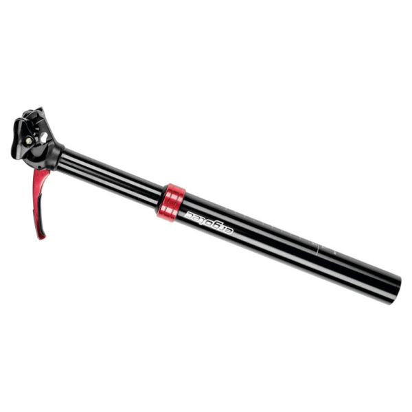 ergotec Vario Sattelstütze "Up & Down" AL 6061 T6, 15mm Offset, ca. 664g Level 6,, Hub 95mm, schwarz sand / rot