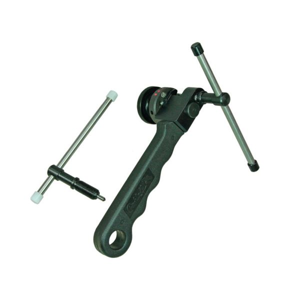 Rohloff Kettennietwerkzeug "Revolver3" Universal, bietet alle benötigten unterschiedlichen Funktionen in einem Werkzeug. Damit können alle (auch 12-fach) Schaltungsketten (einschließlich einer zweiten Spindel für 11-fach Campagnolo Ketten) sowie auch Singlespeedketten (1 / 2" x 3 / 32" und 1 / 2" x 1 / 8") fachgerecht bearbeitet werden.
