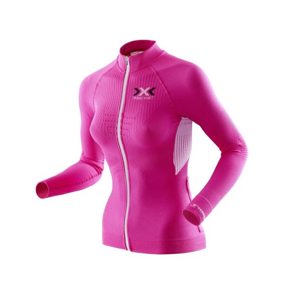 X-Bionic The Trick Full Zip Langarm Fahrradtrikot Damen (pink / weiß)